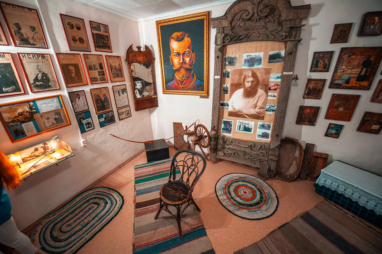 В первом в России частном музее, посвященном Распутину, собрана уникальная коллекция из более чем 5 000 экспонатов. Личные вещи его семьи — посуда, мебель, иконы — легли в основу экспозиции. Среди сокровищ музея фотографии с дарственными надписями царской семьи, личные письма старца, погон с шинели Николая II, коронационные тарелки с изображением императора и императрицы.